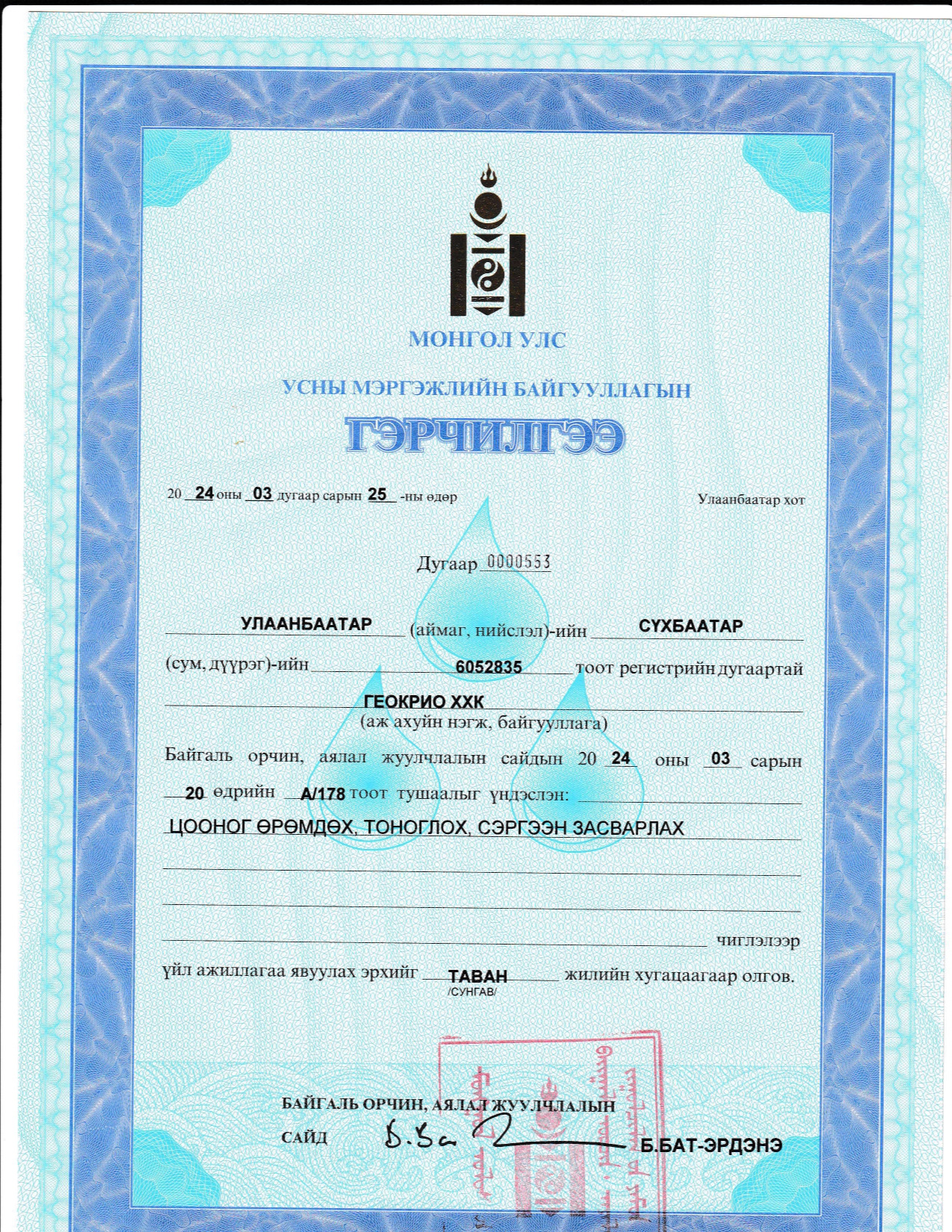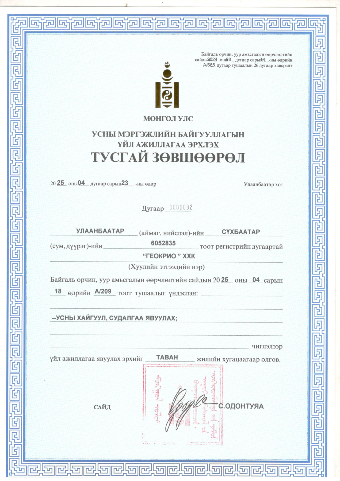 Тусгай зөвшөөрлүүд: